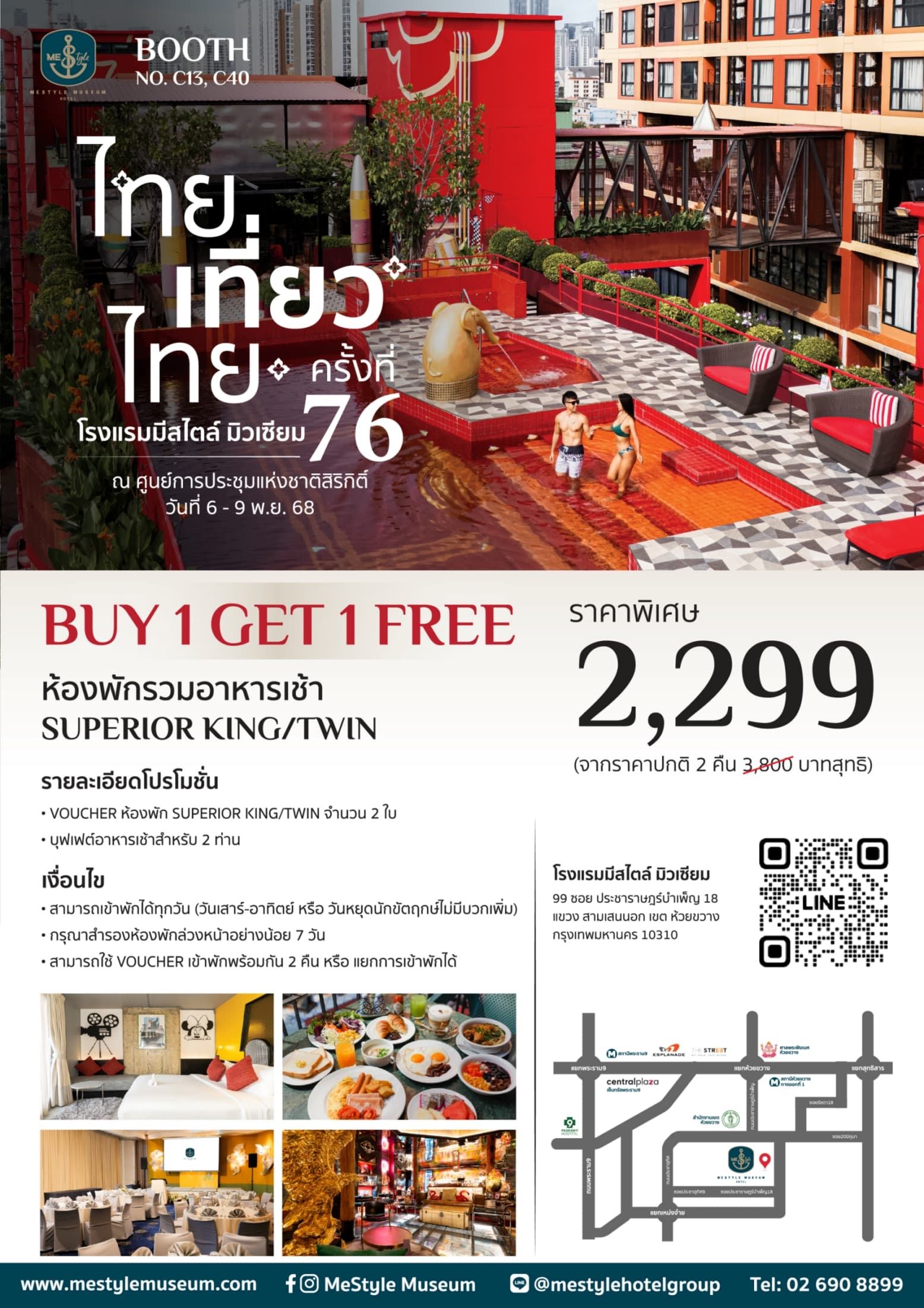 ซื้อก่อนใคร Voucher ราคาสุดพิเศษ ของ MeStyle Museum Hotel ตั้งแต่วันที่ 28 ตุลาคม – 5 พฤศจิกายน 2568